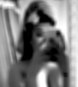 This image is a pixelated photo of an Onlyfans model. The model appears to be a young adult female with dark hair. She is holding a camera and taking a selfie. In the background, there's a shower curtain visible. Please note that this description is based on the information available in the image.