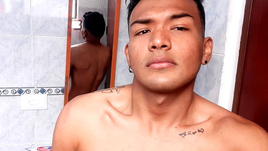 In the image, we see a young man dressed in black and white swimwear. He is standing confidently in front of a mirror in what appears to be a bathroom. The setting is casual, with a hint of style. He seems to be in good shape, possibly indicating an active lifestyle.