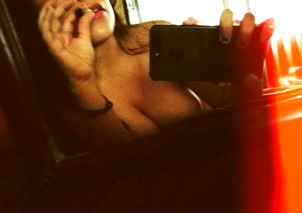 A candid selfie of OnlyFans model Alice, capturing her lively spirit. She appears to be in a room with a red hue, adding a pop of color to the scene.