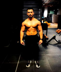 Alecรด is a personal trainer based in Bucharest. He's a fitness enthusiast and enjoys helping others achieve their health goals. In the image, Alecรด stands confidently with his muscles on display, showcasing his dedication to his work and passion for fitness. His posture and attire indicate he's well-prepared for a workout session.