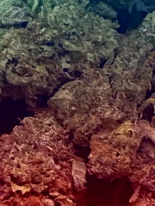 This image captures the details of a vibrant and healthy cannabis plant, showcasing its distinct color variations and textures. The plant is in full bloom, indicating that it has reached maturity.