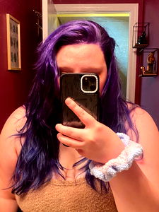 Ally, a popular OnlyFans model, showcases her vibrant purple hair. The image captures the essence of her unique style and personality.