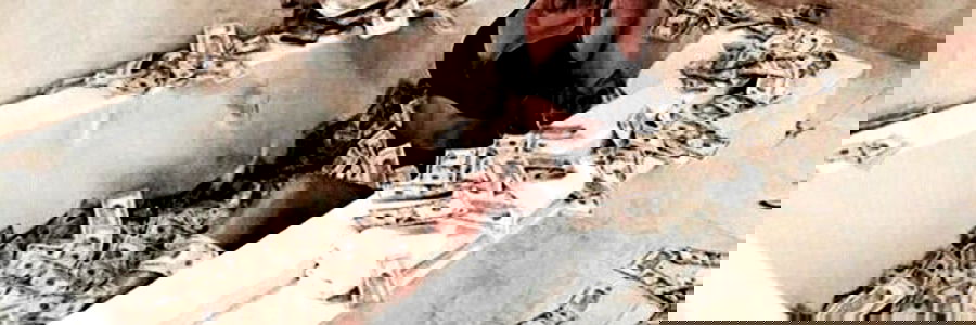 This image appears to be taken from an OnlyFans model's account, showing the model in a bath surrounded by what seems to be cash bills. The content has been filtered out for consistency. It is important to approach such images and content with discretion.