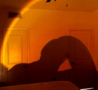 Discover a room that evokes an air of mystery, with a person's shadow projected onto the wall in such a way that it forms an intriguing silhouette. This striking image is a captivating blend of light and shadow, inviting viewers to ponder the story behind this scene. It's reminiscent of classic horror films where shadows play a significant role. Age: 25, Gender: Female