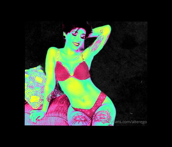 This is an image of a model posing confidently with a backdrop, likely in an OnlyFans context. The model is dressed in lingerie and has visible tattoos, suggesting they have a unique and expressive style. They appear to be in their mid-twenties.