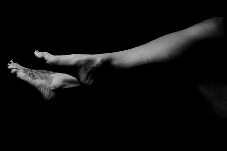 Alylacatanese, an OnlyFans model, is seen in this image. She has a tattoo on her left leg and is sitting with one foot visible while the other is under the table. Her pose and outfit suggest a casual, relaxed setting.