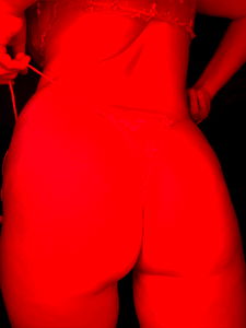 Discover the captivating world of Amanda, a model hailing from the United States. In this image, she's seen in an alluring pose with a mix of red and black, set against a dark background. Her unique attire adds to her enigmatic appeal.