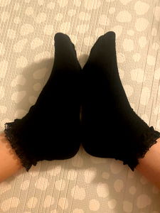An intimate look at Amanda Pratt's freshly manicured toes. The toes are adorned with a delicate blue nail polish, creating an alluring contrast against the neutral background. The setting appears to be a cozy living room, with a window providing a glimpse of the world outside. This image seems to capture a moment of relaxation and self-care in the comfort of one's own home.