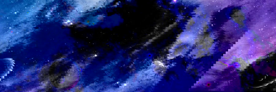 Vivid colors of nebula and planets create a striking piece of art. A tribute to the mysteries of space.