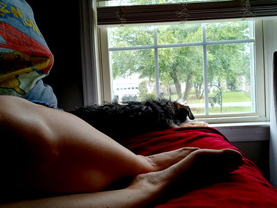 A mysterious and enigmatic figure captured in this image, Paramour Next Door stands out with their unique fashion sense. Shot against the backdrop of a window, the model is seen in a moment of quiet reflection, adding an air of mystery to the overall composition.