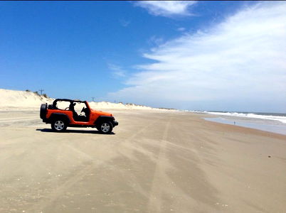 This Jeep LC is parked on a sandy beach, with the open top allowing for an unobstructed view of the ocean. The vehicle's rugged exterior and black soft top suggest it's ready for any adventure. The Eastern USA location suggests a warm, sunny climate, perfect for a day at the beach.