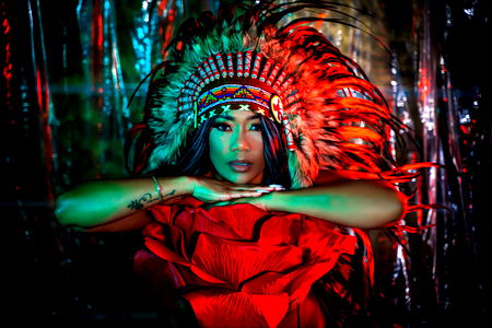Amaya Blue, the Miami VIP model, strikes a pose for a stunning photo with red, green, and blue lighting that accentuates her confident persona. Her OnlyFans platform offers exclusive content for fans. Amaya is from Miami FL.