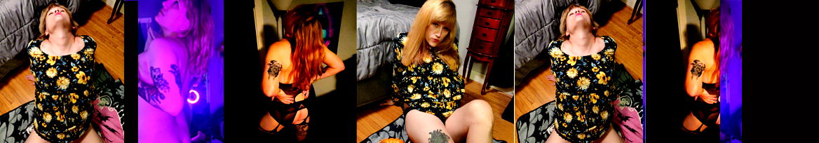 Professional model Amazon Eve is seen here in a themed, Halloween-inspired photoshoot. She's dressed in a floral blouse and tattooed arm, with the room tastefully decorated for the holiday.