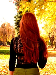 Caught in a beautiful autumn setting, Amber stands amidst the leaves, her long hair catching the light. She looks off to the side, perhaps lost in thought or simply enjoying the crisp fall air.