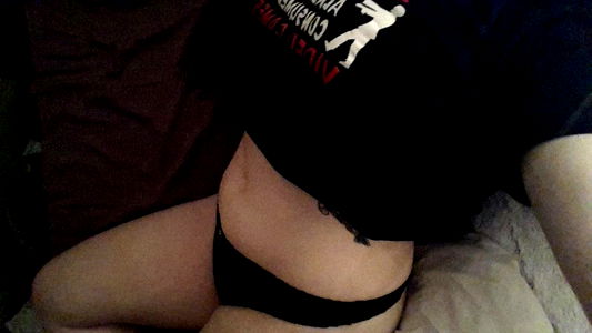 This is an image of a person sitting in a room. They are wearing black lingerie and have their back to the camera. The individual appears to be a young adult female with a tattoo on her shoulder. The room has a casual atmosphere, indicated by the informal pose and the relaxed setting. This photograph seems to be part of an Onlyfans account, suggesting that it may include suggestive content.