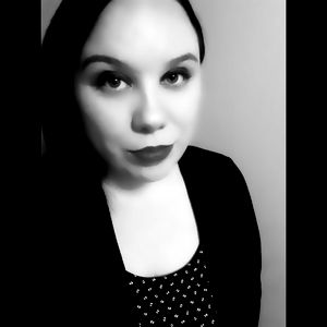 A photograph of a woman with dark hair, wearing makeup and a polka dot top. She is standing against a neutral background. The image appears to be a casual portrait style photo.