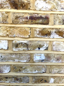 The image showcases a charming brick wall, likely from an old building. The bricks have a warm color and are held together by mortar, giving the impression of sturdy construction. Amelie, standing in front of the wall, is a model with a modern and stylish appearance. She complements the vintage aesthetic of the wall, adding a touch of contemporary flair to the scene.