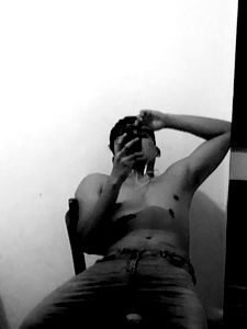 Amenadiel, a model from Onlyfans, is seen sitting shirtless in front of a mirror. He is looking directly into the camera with a confident pose.