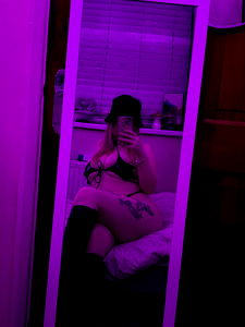 Experience the allure of Amethyst, an OnlyFans model who exudes confidence and sensuality. This image captures her in a purple-lit room, showcasing her unique style and striking features.