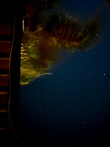 Amethy captures a tranquil night scene, showcasing the allure of celestial bodies over vast oceans. The image presents a harmonious blend of natural elements, with the calm ocean as the canvas for the star-studded sky.