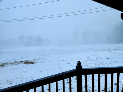 The snowstorm continues, blanketing the farm with a thick layer of white. The weather seems to be getting worse as more snow piles up in the open field. A small shelter stands against the relentless wind, hinting at the hardships this place might face.