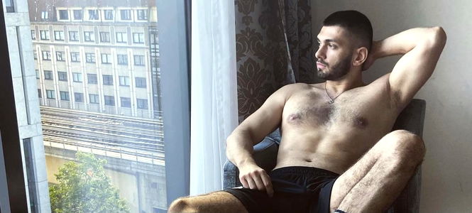 Amir, an OnlyFans model, is seen shirtless in a kitchen with modern appliances. His toned physique and confident pose suggest he might be part of the fitness influencer community. The kitchen's contemporary design features stainless steel appliances, reflecting Amir's attention to detail.