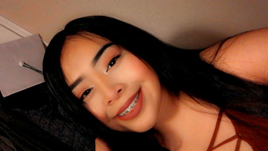 A person with long hair wearing a red top, smiling and looking at the camera. The individual appears to be indoors with a visible piece of clothing in the background. 23 years old.