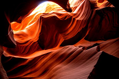 This image captures the breathtaking beauty of a slot canyon, with its striking red sandstone walls and layers, evoking a sense of wonder and exploration. The perspective from inside the canyon provides a unique viewpoint and emphasizes the height and depth of this natural wonder. A must-see for nature enthusiasts and photographers alike.
