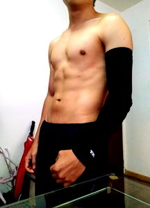 Another Mexican, a model based in Mexico, showcases his physique on OnlyFans. The young man is captured in a moment of intimacy with the camera, demonstrating his dedication to fitness and confidence in his body. In this image, he stands shirtless, displaying his toned muscles and abs. He wears casual attire consisting of a tank top and plaid boxer shorts, adding an everyday touch to the scene. The background is simple and uncluttered, ensuring that attention remains on the model himself.