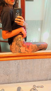 This is a powerful image featuring a tattoo artist named Lilah from Argentina. She has an incredible range of tattoos that showcase her creativity and skill. Her dedication to the art form is evident in the intricate designs adorning her body, making her a true inspiration for fellow tattoo enthusiasts.