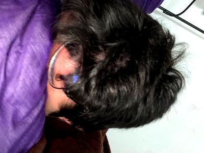 The image shows a man in what seems like an indoor setting. He is sitting down and is holding his hand up near his face in a way that slightly obscures it. His expression is not clearly visible due to the hand's position. The background appears to have a carpeted floor, indicating a home or similar personal space.