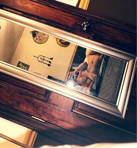 Anastacia Angelique, a popular OnlyFans model, poses for a mirror selfie capturing her confidence and beauty. Dressed in lingerie, she stands against a backdrop of a bedroom with a reflection of her bed in the mirror.