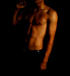 Andalca, a popular OnlyFans model, is captured in this professional portrait. With their muscular physique and chiseled features, they exude an air of confidence and allure. Their pose against the stark white background emphasizes their toned body and highlights their striking facial features.