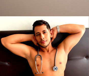 Indulge in the world of Ander, a mesmerizing model embodying the essence of masculinity and allure. His scandalous scenes are filled with intense chemistry and an air of professionalism. In this particular image, Ander is captured in a suggestive pose as he leans against a bed adorned with a black headboard. His shirtless physique and confident gaze make him the epitome of a seductive physician.