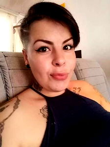 This is Andrea Murillo, a model known for her striking tattoos. She sports a short, styled haircut and has tattoos on her arms and torso. Her style exudes confidence and individuality.