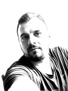 A portrait of Andrei Scarlat, a photographer based in Bucharest. The photo captures a moment of contemplation and pride as he reflects on his career.
