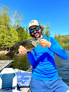 Andrew Stone is seen on a boat, proudly displaying his trophy fish. He's dressed for a day on the water, ready to set sail for more fishing adventures. This image captures the thrill and joy of being outdoors and engaging in this popular pastime. Andrew looks overjoyed with his catch, reflecting the excitement and satisfaction that many fishermen feel when they bring home their hard-earned rewards from the water. It's a snapshot of a special moment for him, commemorating his angling skills and the beautiful surroundings of his fishing trip.