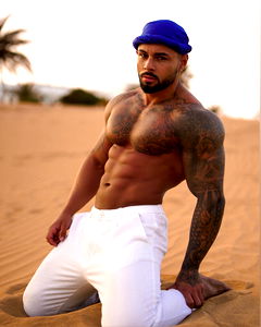 Andrew G., a popular OnlyFans model, is showcasing his beach-ready physique on a sunny day. His muscular arms and toned abs are evident, suggesting a rigorous fitness routine. Dressed in casual attire and accessorized with sunglasses, he's the epitome of beachside coolness.