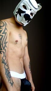 OnlyFans model Pup Shiro from Bogotรก, DC, Colombia, showcasing a fit body with tattoos, wearing a mask and underwear. ๐พ๐๐จ๐ฉ #pupcommunity #fitnessfanatic #underwearmodel #Colombia