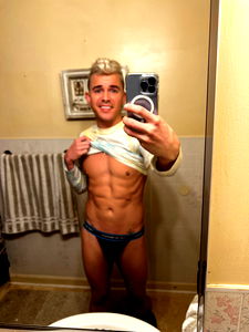 Andy Taylor, a model from South Carolina, shares a striking photo of himself with a playful tongue gesture. He is adorned in a vibrant blue outfit and sports a matching dyed blonde hairstyle that adds a pop of color to his overall look. Andy's pose and expression give off a fun and energetic vibe, perfectly capturing the essence of youth and style.