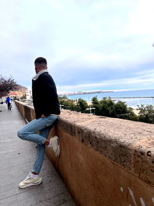Andy, a social media influencer from Italy, takes a moment to enjoy the view of the sea.