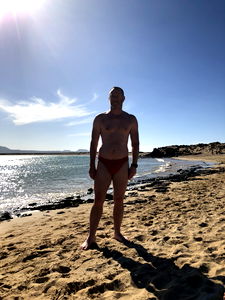 Scotland's Favorite Instagram Model, Andy W Top, Strikes a Pose on the Sandy Shore.