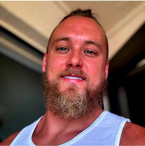 Andy Savage is a fitness influencer known for his dedication to bodybuilding and maintaining a healthy lifestyle. In the image, he strikes a confident pose, emphasizing his well-defined muscles and beard.