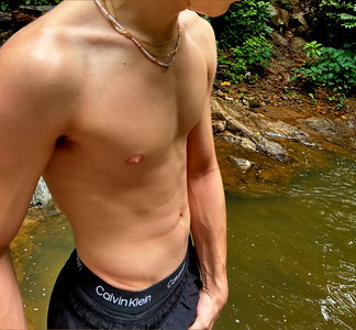 Angelito is a young male model, known for his athletic build and striking smile. He's captured a playful moment on the beach, sharing a fun pose.