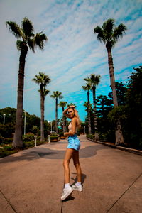 Angel, an Onlyfans model, is seen capturing her reflection in a circular mirror. She's dressed casually in a white crop top and jeans, embodying a cool and relaxed vibe. The backdrop features a clear blue sky, which adds a vibrant touch to the image.