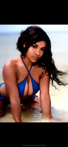 Angela Vega is a model and influencer known for her stunning looks and captivating presence. She is seen here in a seductive pose on a beach, showcasing her assets in a bikini. Her OnlyFans profile, 'In Your Dreams', suggests an exclusive and intimate content offering.