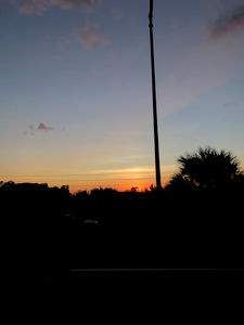 The tranquil view of a sunset at the end of a day, seen from an outdoor rooftop, with a hint of cloudiness in the sky.