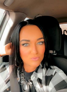 Angel K, a content creator on Onlyfans, exudes positivity in this photo. She sports a vibrant look with teal hair and matching blue denim jacket, accessorized with a chic turquoise necklace. Her smile radiates warmth, and her eyes sparkle, giving off a cheerful vibe. From behind the wheel of her car, she shares an inviting glimpse into her day-to-day life.