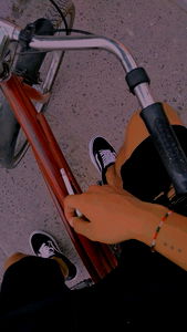 An Onlyfans model, Angel Roud showcases a laid-back style with casual shoes and a blue denim pant leg casually kicked up. A glimpse of a tattoo hints at their unique persona.
