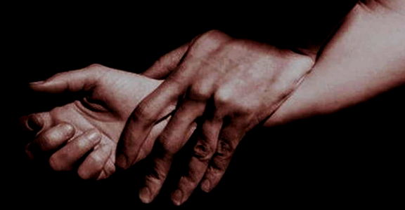 Photograph of OnlyFans model Angel Skin taking a selfie in front of a mirror. He is shirtless and has long hair. The photo captures him from the waist up.